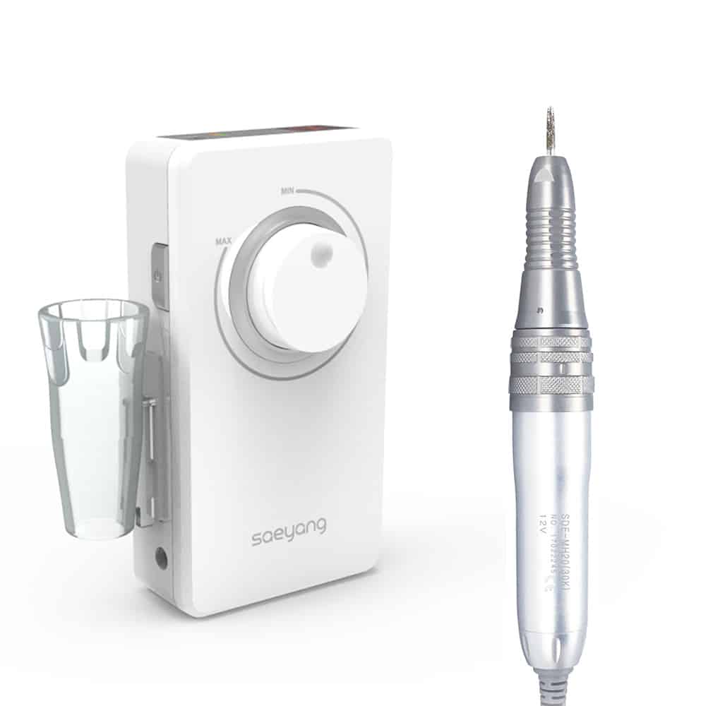 The Saeyang K38 Portable Efile with the lightweight yet powerful and dynamic MH20 handpiece is perfect combination for any busy nail tech seeking a reliable, high-quality portable e-file.